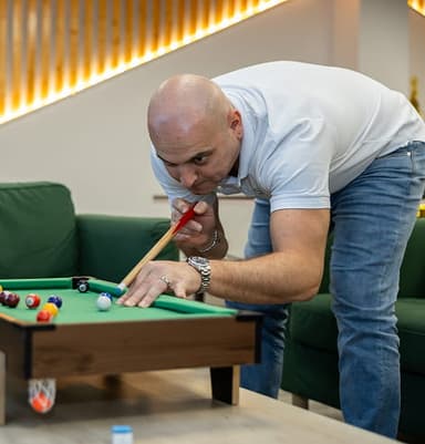 We take lunch breaks of a full hour, allowing time for socializing, mindful eating, and a true break. Mini-billiards, couches, and ping pong are available in our Spanish HQ.