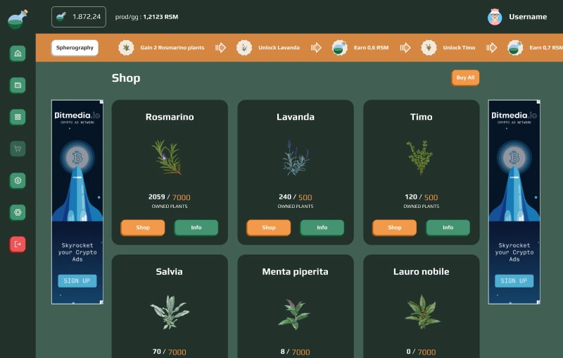 We developed Rosmariano, a Web3 browser game that blends entertainment with real-world value. Players grow aromatic plants and earn rewards through the RSM token system, combining playful design with blockchain technology. Built with Unity and WebGL, Rosmariano showcases our expertise in blockchain game development and our ability to deliver seamless, browser-based gaming experiences.